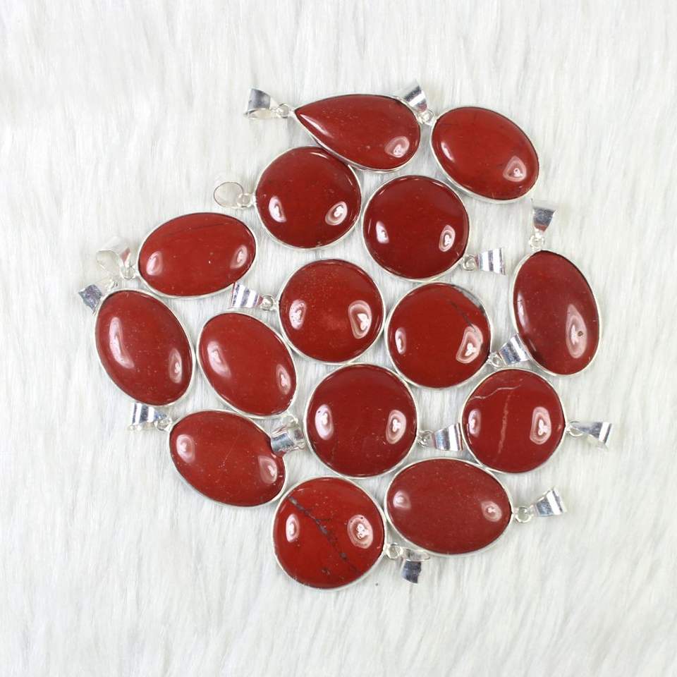 จี้หินแจสเปอร์สีแดงสวยงามสำหรับทำเครื่องประดับเงิน จำหน่ายส่งจำนวนมาก พร้อมกรอบจี้