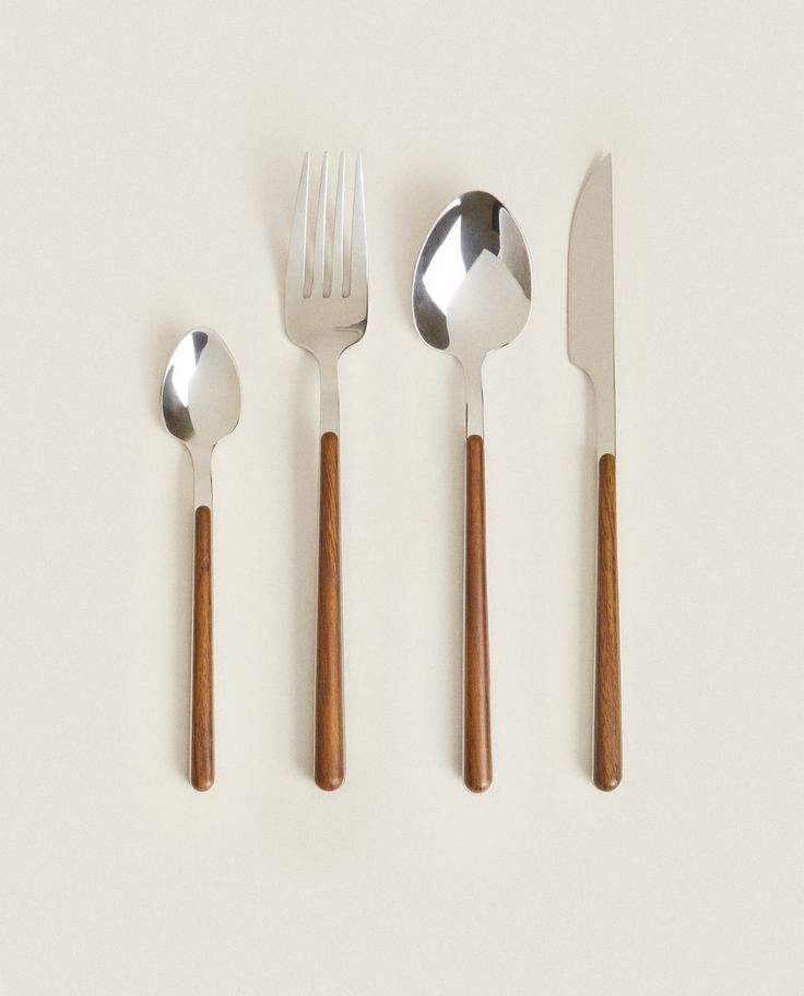 ชุดช้อนส้อมสแตนเลสคุณภาพเยี่ยม พร้อมด้ามจับไม้ สำหรับใช้ในบ้าน โรงแรม และร้านอาหาร