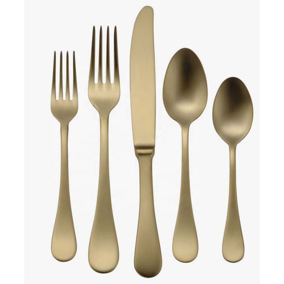 ชุดช้อนส้อมและมีดด้ามยาวทำจากสแตนเลสสตีลขัดเงาสีทองรอยัลที่น่าทึ่งชุดช้อนส้อมมีด