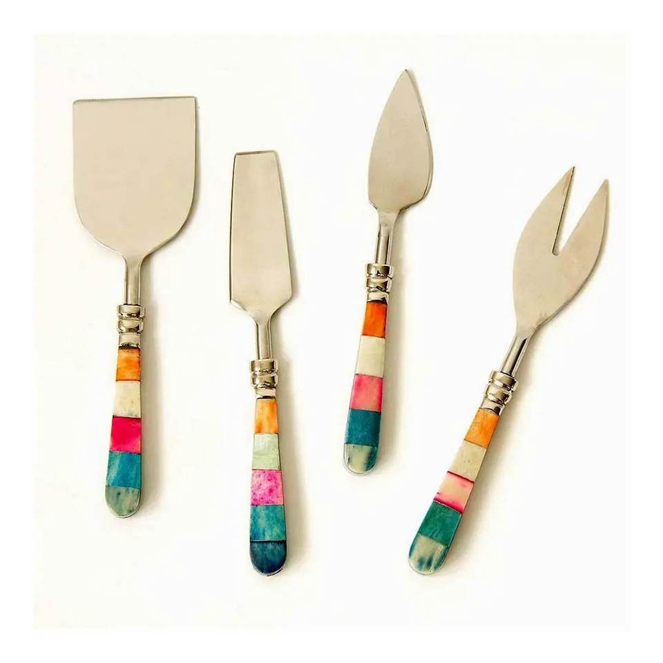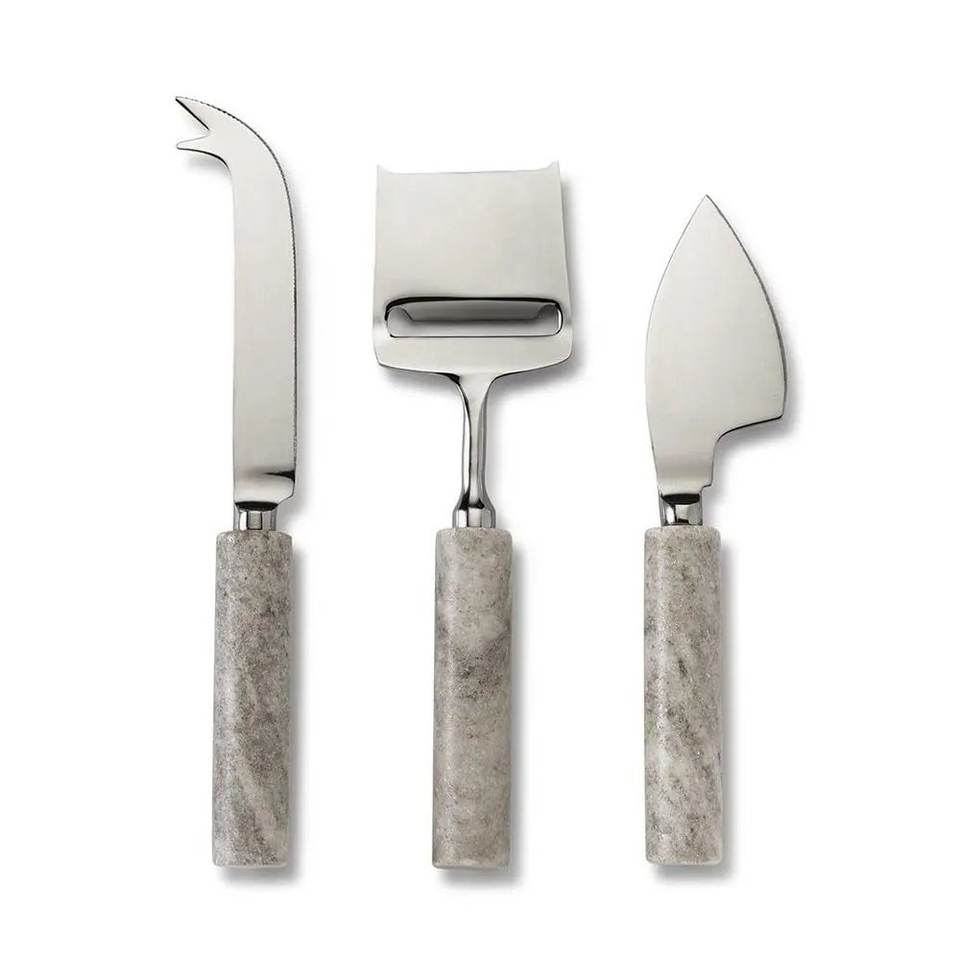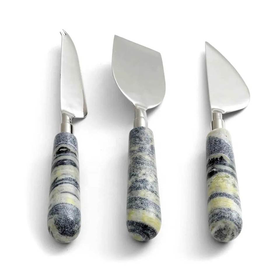 ชุดชีสสแตนเลสสีเงินสุดหรู ด้ามจับเรซิ่นสีดำลายหินอ่อน ปลอดภัยสำหรับเครื่องล้างจาน อุปกรณ์ชีสสำหรับเครื่องครัว