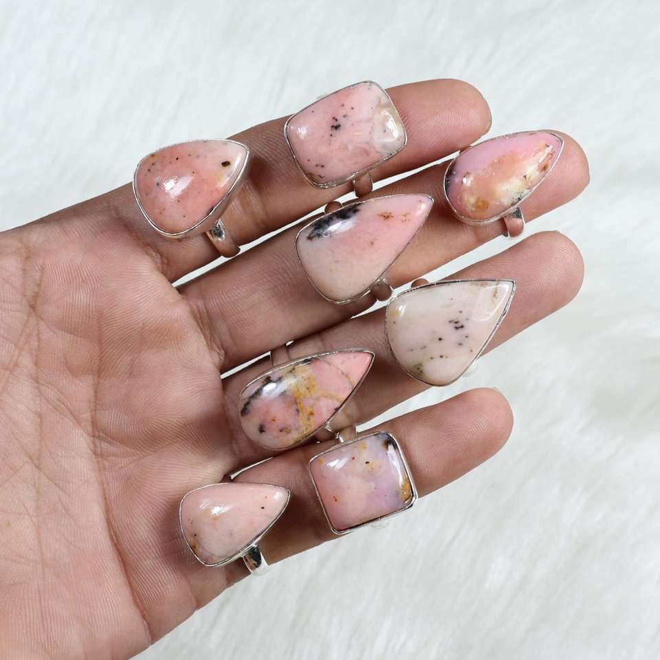 แหวนขอบพลอยโอปอลสีชมพูคุณภาพสูงเครื่องประดับเงินสุดทึ่งสำหรับงานแต่งงานจำนวนมากจากดีไซเนอร์