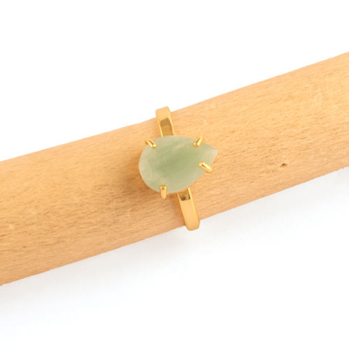 แหวนพลอยอเมซอนไนต์รูปลูกแพร์ชุบทอง24K เครื่องประดับแฮนด์เมดสำหรับงานแต่งงานและงานเลี้ยง