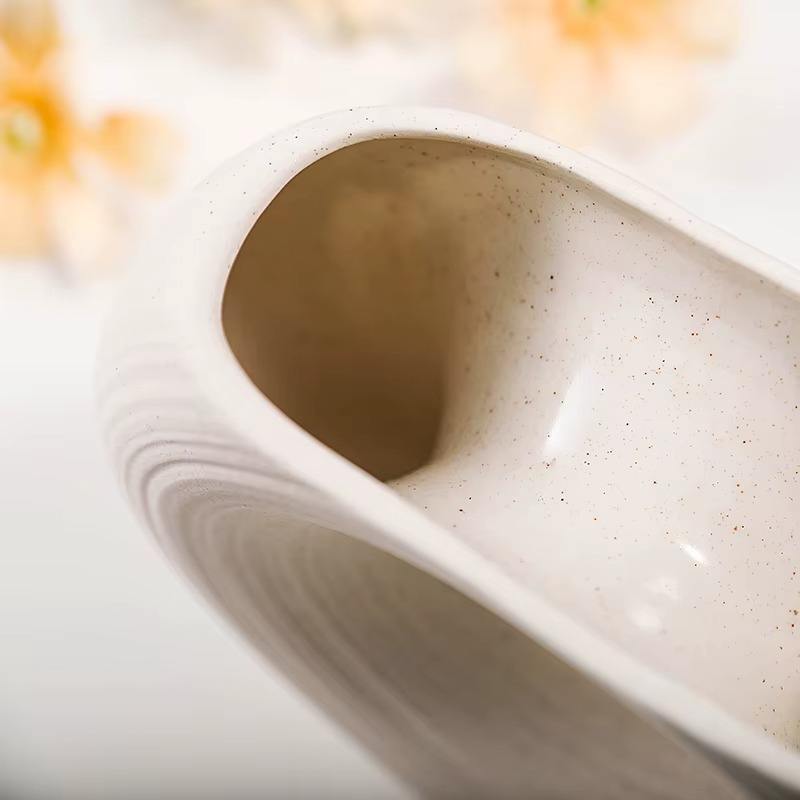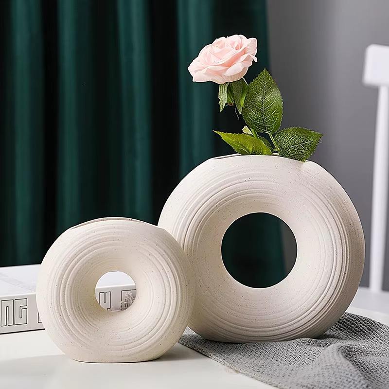 แจกันเซรามิกสีขาวสวยงาม ดีไซน์ทันสมัย เหมาะสำหรับงานแต่งงาน โดดเด่นด้วยแสงธรรมชาติอย่างงดงาม