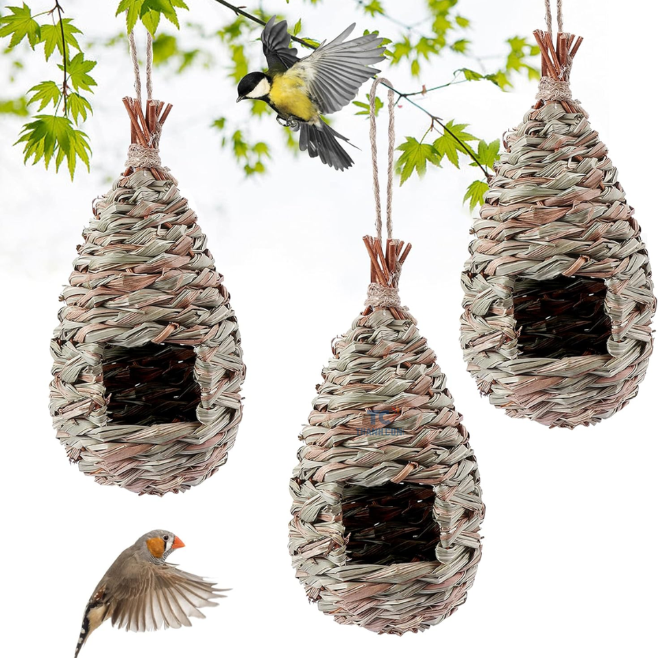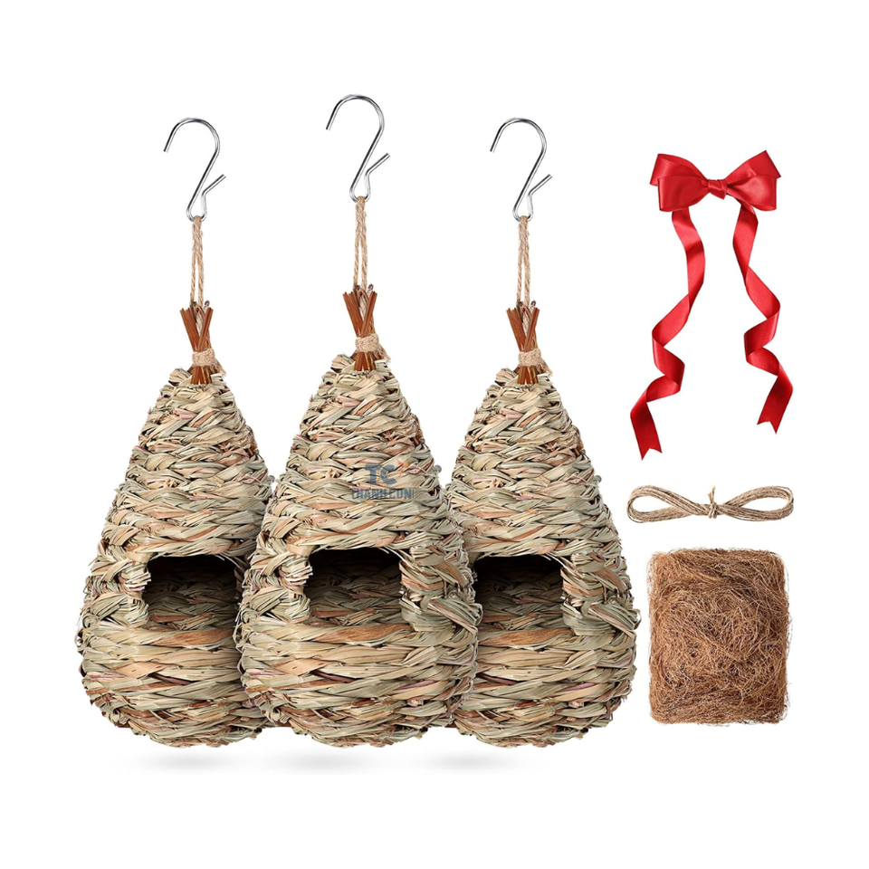 รังนกทรงกลมทำจากหญ้าธรรมชาติสำหรับบ้านรังนกรังนกแบบใช้มือ