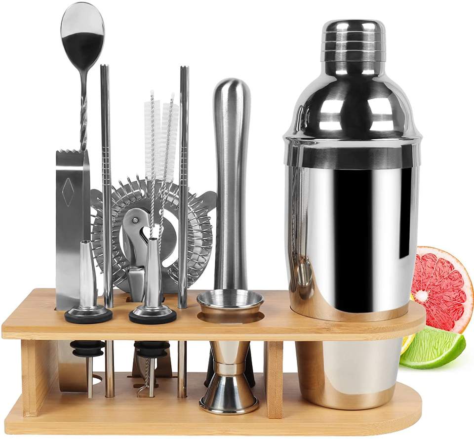 Amazon Premium 11 Pieces Stainless Steel Bar Tools Copper Plated Bartender Kit with Bamboo Stand KING INTERNATIONAL