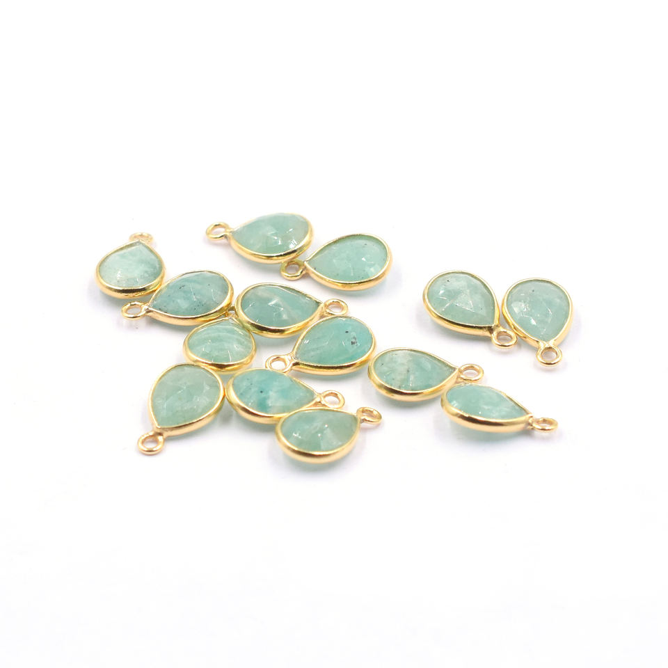 จี้925รูปลูกแพร์ Amazonite ชุบทองทำเครื่องประดับแฮนด์เมด