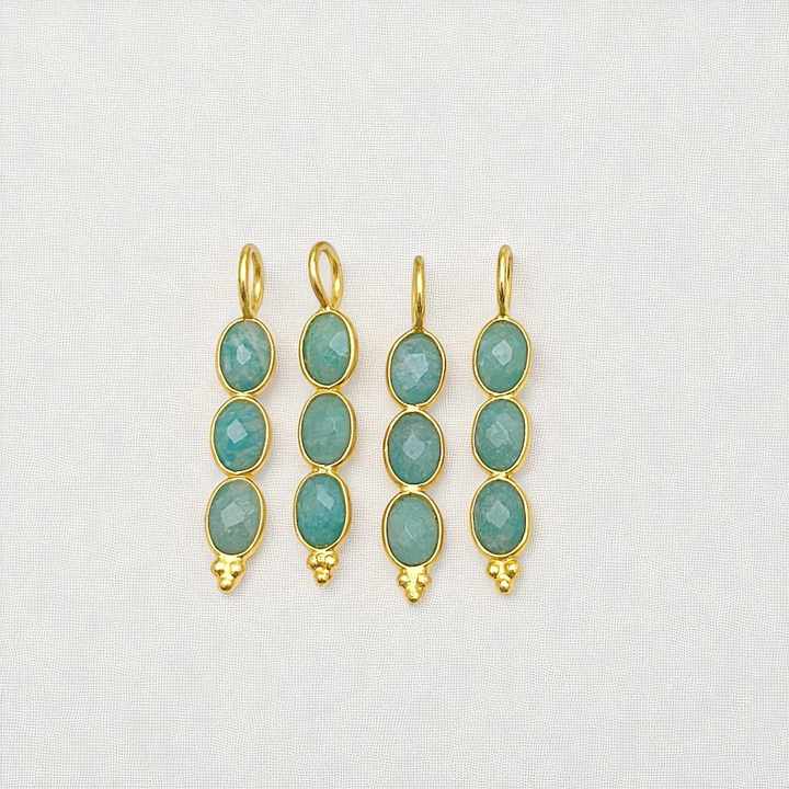 Title:Gemstone 3 Stone Pendant 6x4mm Oval 925 Silver Bezel Charms