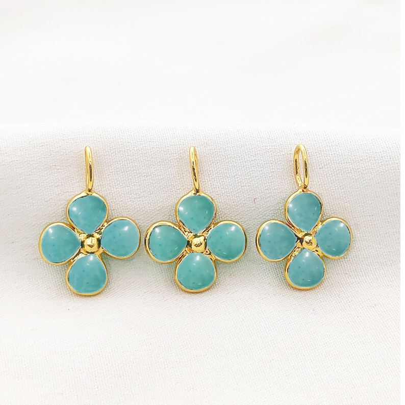 จี้รูปใบโคลเวอร์อะเมโซไนต์ขนาด 5 มม. จี้อะเมโซไนต์รูปใบโคลเวอร์แบบเรียบพร้อมห่วงขนาด 7x5 มม. ชุบทองประดับอัญมณี