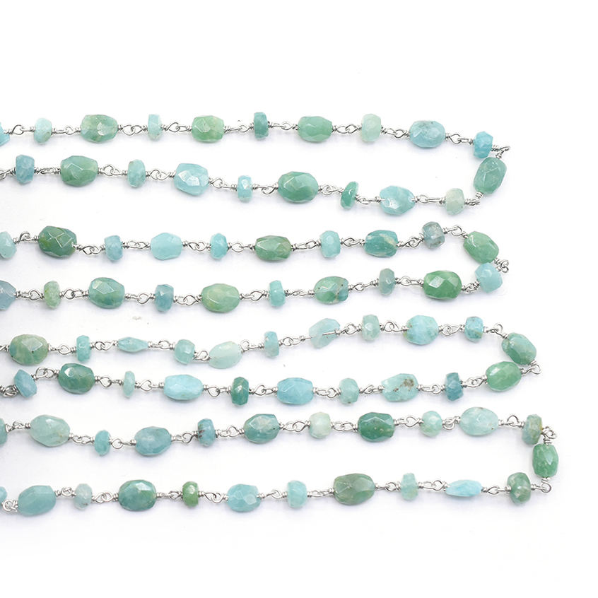 Amazonite Silver Plated Sterling Silver Rosary Wire Wrap Chain
