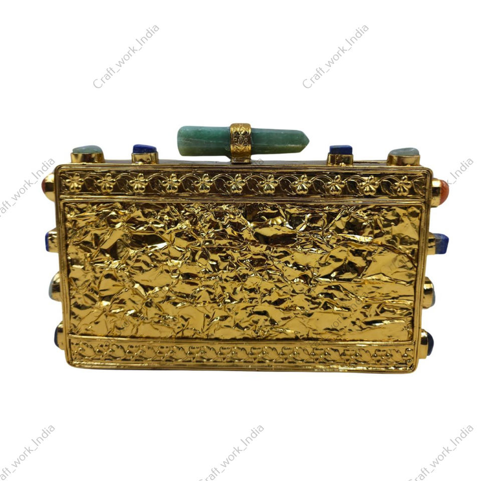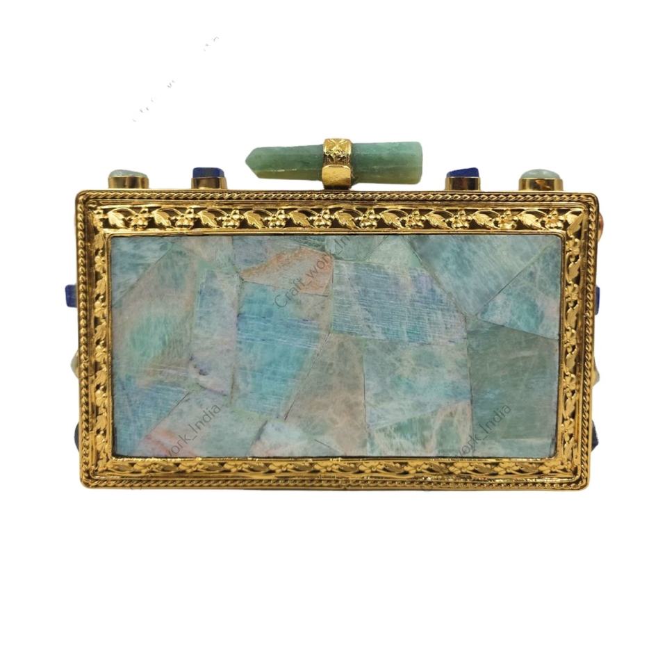 กระเป๋าคลัทช์โมเสคพลอยอะเมโซไนต์ พร้อมกรอบทอง กระเป๋าถือสำหรับงานเลี้ยงกลางคืนสุดหรูสำหรับผู้หญิง ประดับด้วยหินธรรมชาติ ทำด้วยมือ