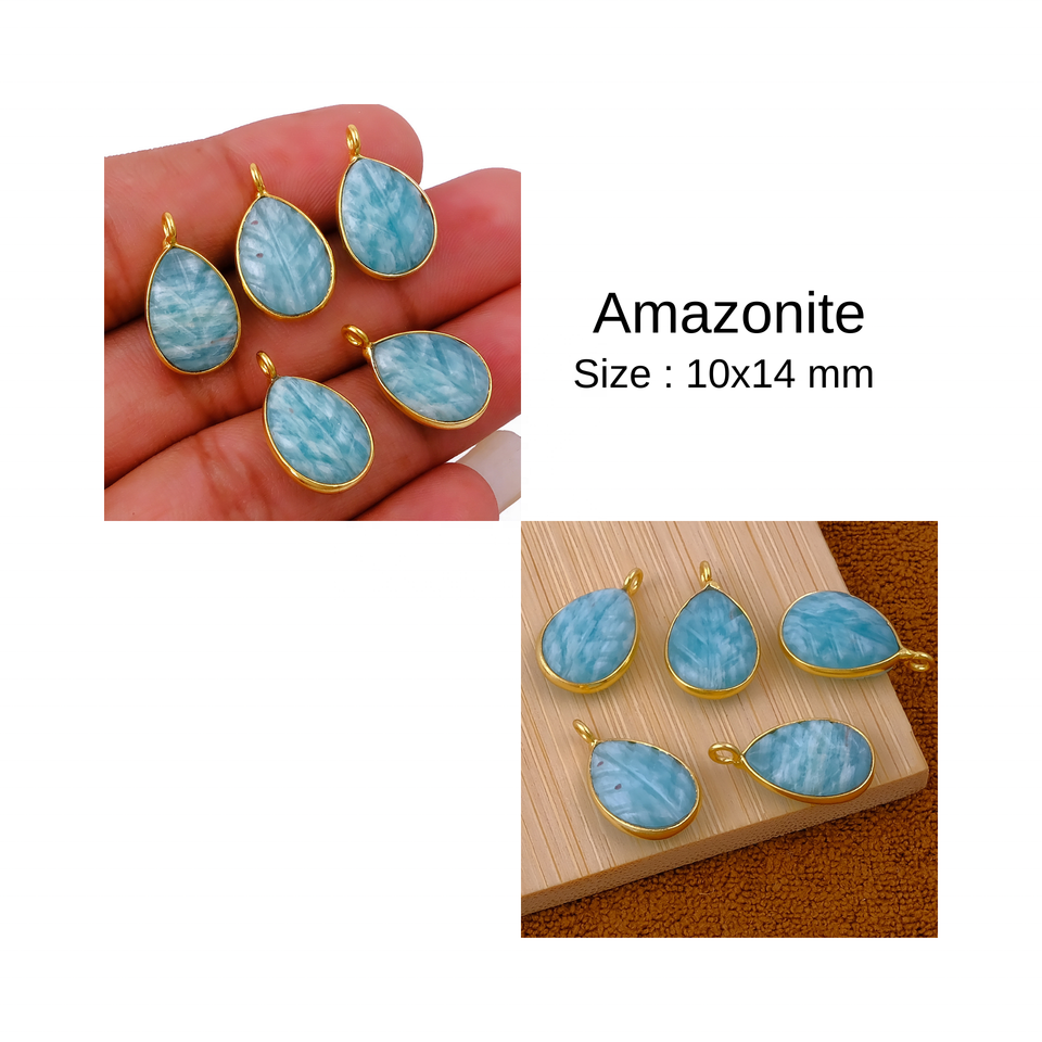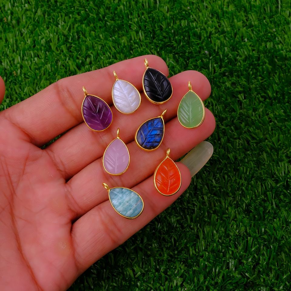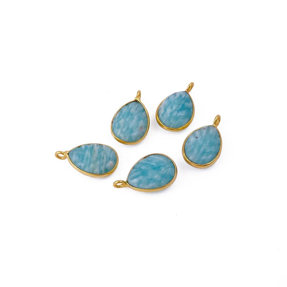 จี้อัญมณีอเมซอนไนต์ทำมือชุดฝาพร้อมจี้รูปหยดน้ำสีทองสลักรูปใบไม้จี้แฟชั่นและเสน่ห์