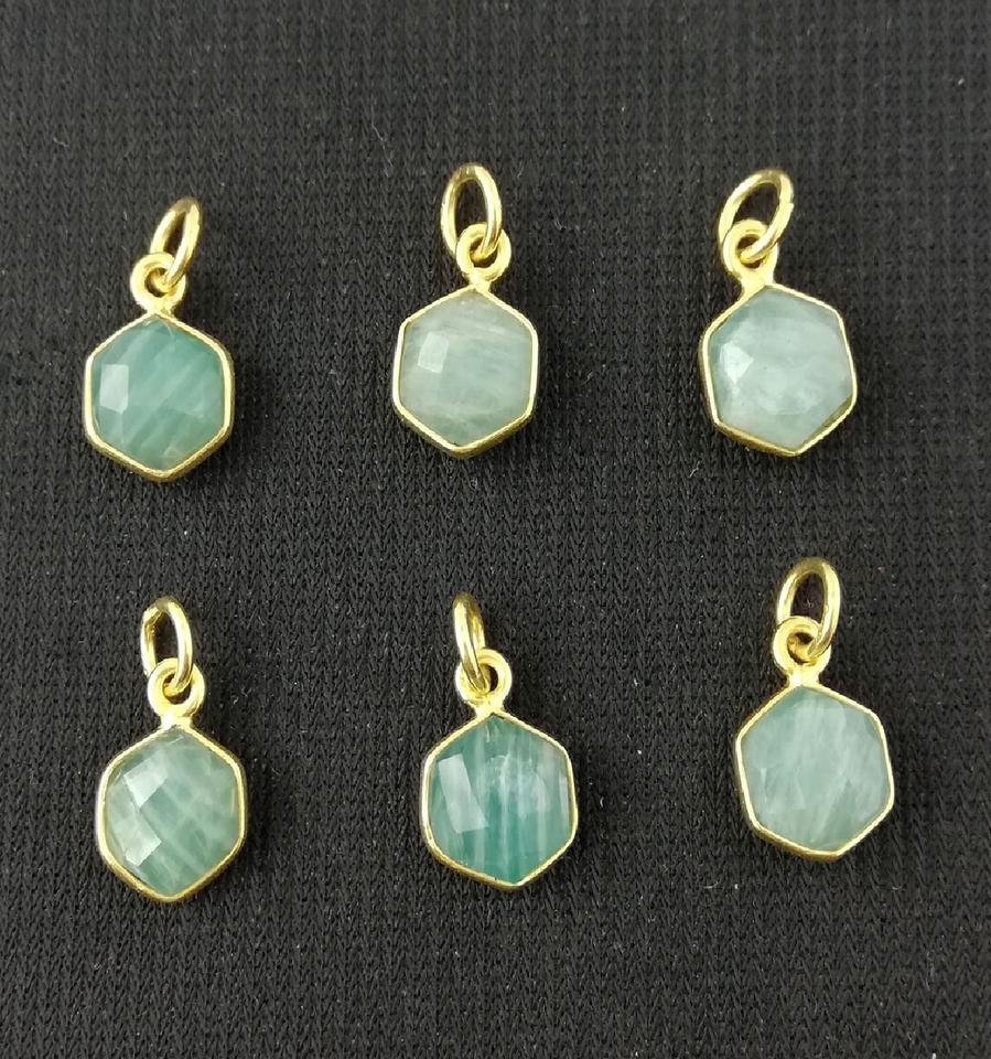 Amazonite อัญมณีเงิน BEZEL ชุบทองรูปหกเหลี่ยมหินเหลี่ยมเพชรพลอยพร้อมประกันตัวโอชะเสน่ห์สร้อยคอจี้เครื่องประดับ