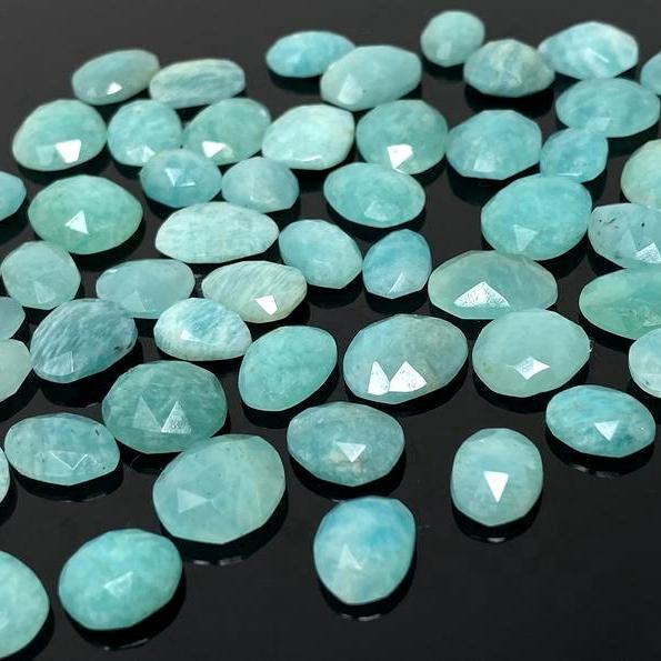 อะเมซอนไนต์ขัดเงา รูปทรงไม่สม่ำเสมอ เจียระไนแบบโรสคัท คาโบชอง หลังแบน พลอยธรรมชาติ คุณภาพดี อินเดีย เจมส์ เอไนเอ1 ทีเธอร์ด