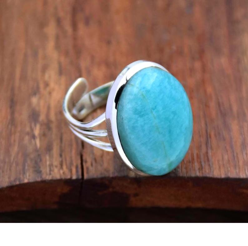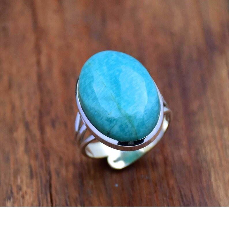 แหวนอเมซอนไนต์925แท้แหวนเงินสเตอร์ลิงวงใหญ่ปรับได้สายรัดสามชั้นเครื่องประดับงานแต่งงานสำหรับเธอ