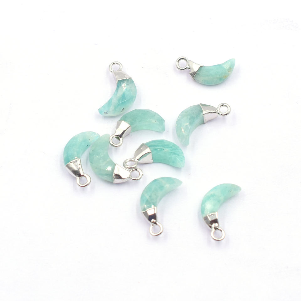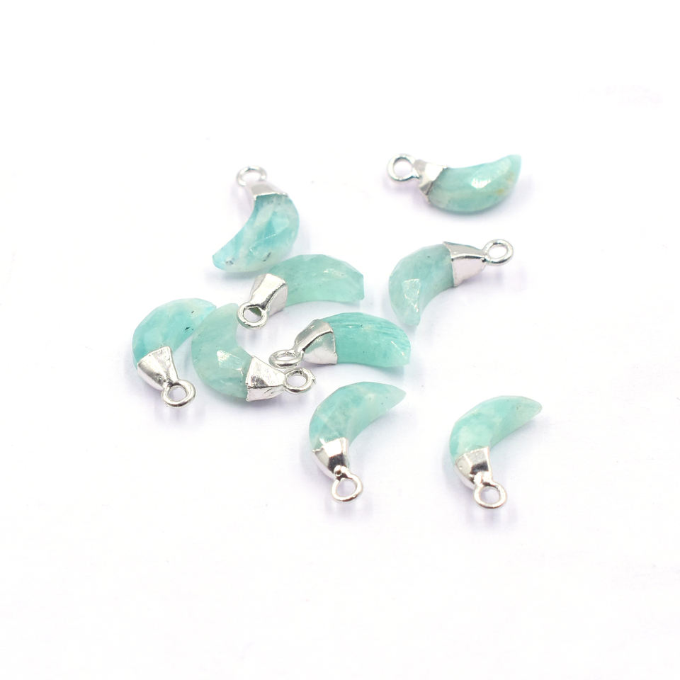 ชื่อสินค้า:จี้หินอเมซอนไนต์ ทรงพระจันทร์ ขนาด 11 ถึง 13 มม. พร้อมห่วง ชุบเงิน