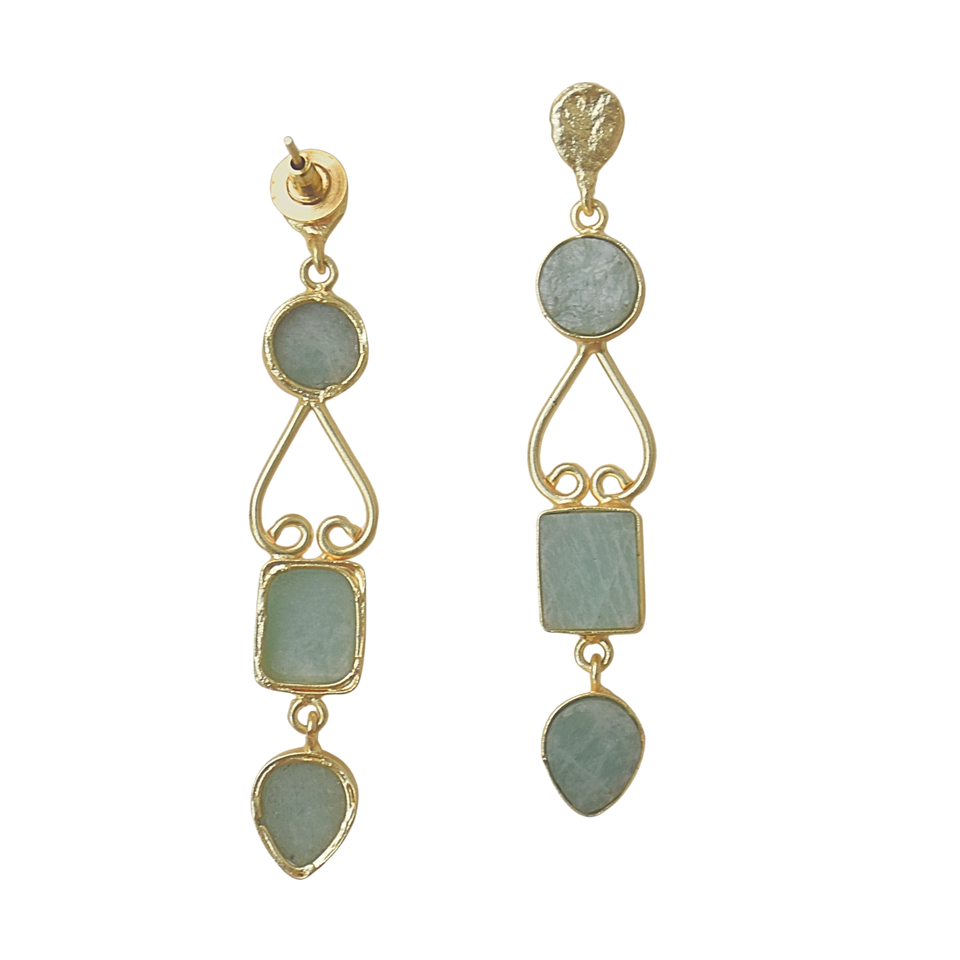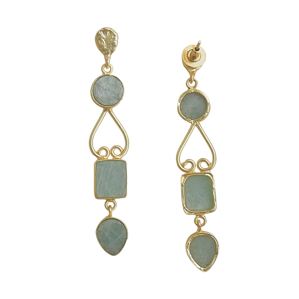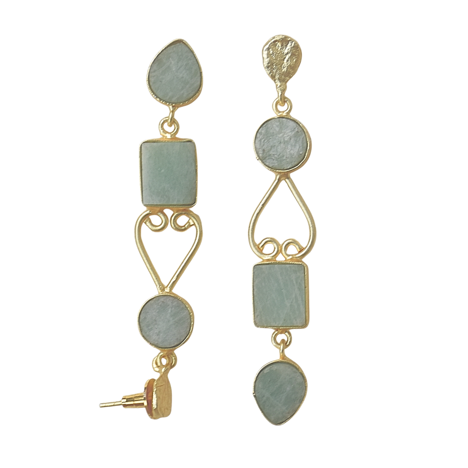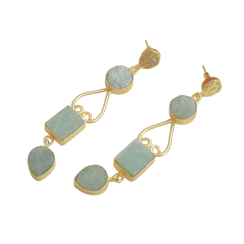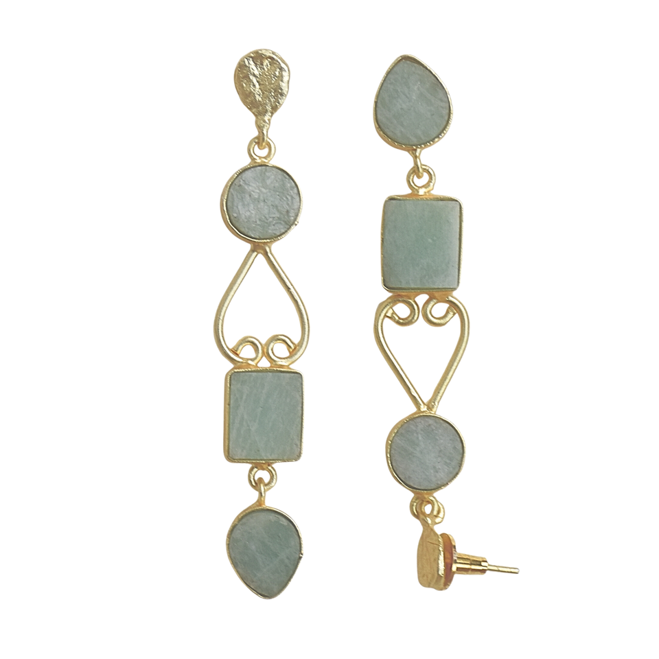 ต่างหูห้อยยาวประดับอะมาโซไนต์ทองเหลืองชุบโรเดียม