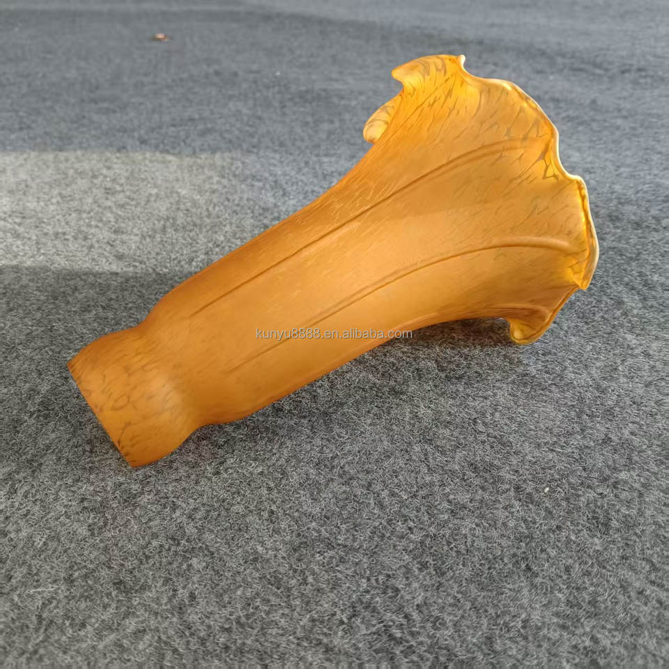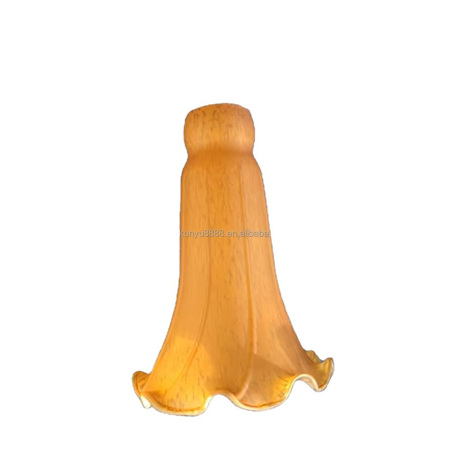 โคมไฟทรงกระบอกแก้วเป่าสีอำพัน ทำมือสไตล์ยุโรป ลายดอกบัว พร้อมติดตั้งง่ายสำหรับใช้ภายในอาคาร