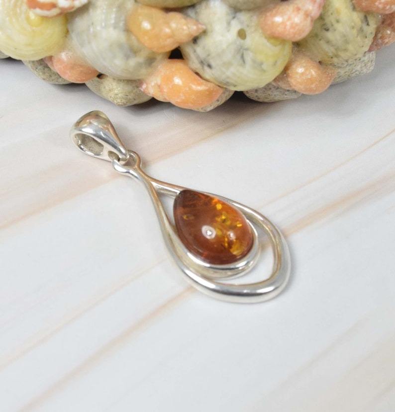 จี้อำพันเงินแท้ 925 ดีไซน์เนอร์ประดับพลอยแท้รูปทรงลูกแพร์ อำพันธรรมชาติ ทันสมัย แบบโซลิแทร์ รับประกันโดยบุคคลที่สาม