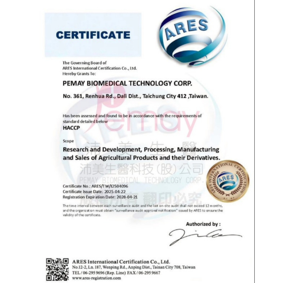 COA / MSDS / ISO 22716 / HACCP / ISO 22000