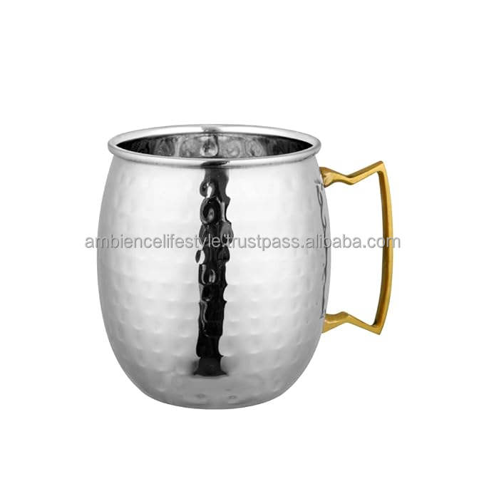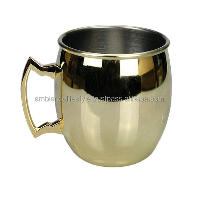 แก้วมักทำจากสเตนเลสชุบทองพร้อมที่จับ