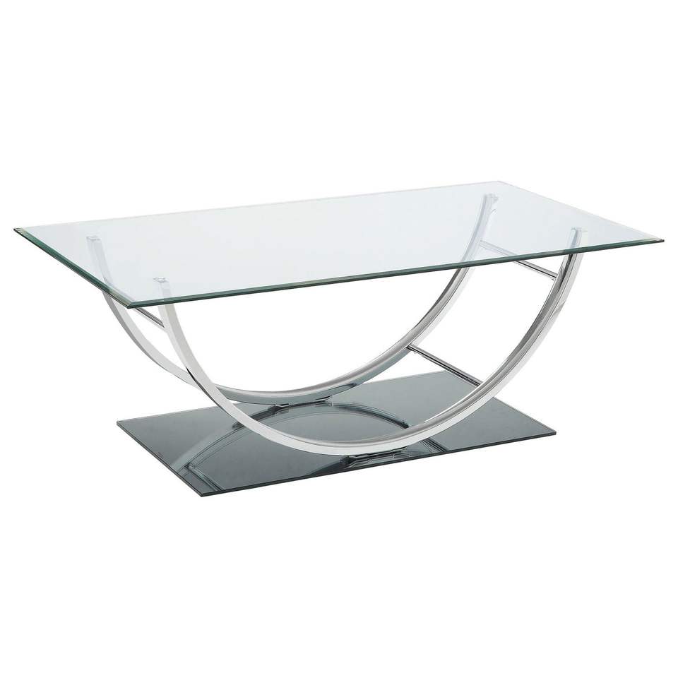 โต๊ะกาแฟโครเมี่ยมรูปตัวยูอมีเลียพร้อมกระจกทรงสี่เหลี่ยมด้านบน