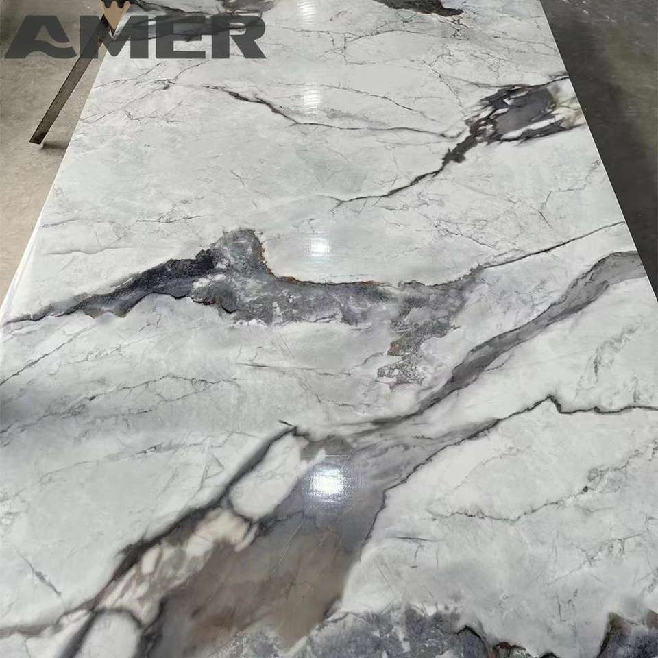 แผ่นผนังโฟมพีวีซีลายหินอ่อน Amer Uv ขนาด 4*8 แผ่นโฟมพีวีซีขยายตัว Plastwood Forex แผ่นโฟมพีวีซี