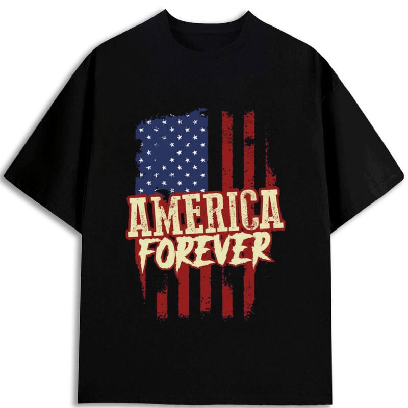 เสื้อยืดคอกลมผู้ชาย America Forever ผ้าฝ้าย 100% หนานุ่ม พิมพ์ลายธงชาติสหรัฐอเมริกา ผลิตในสหรัฐอเมริกา