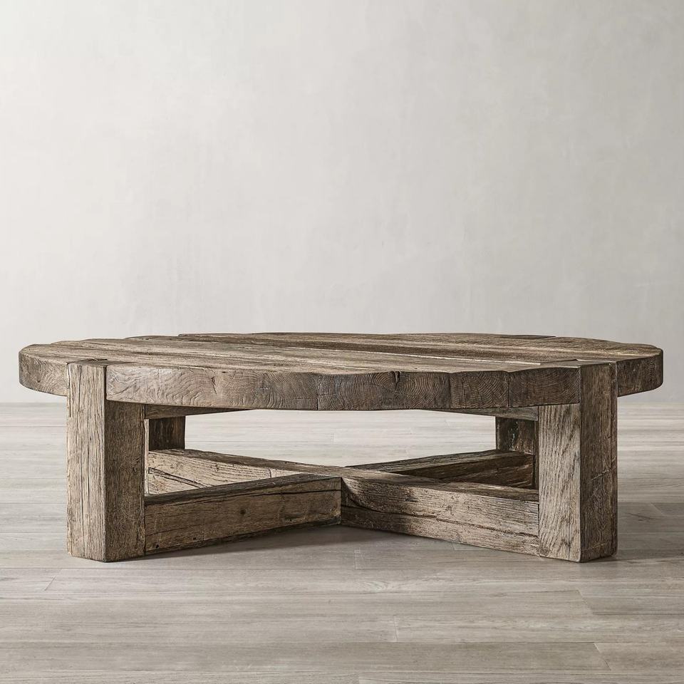โต๊ะกาแฟไม้จริงทรงกลมสไตล์วินเทจโบราณสำหรับห้องนั่งเล่น
