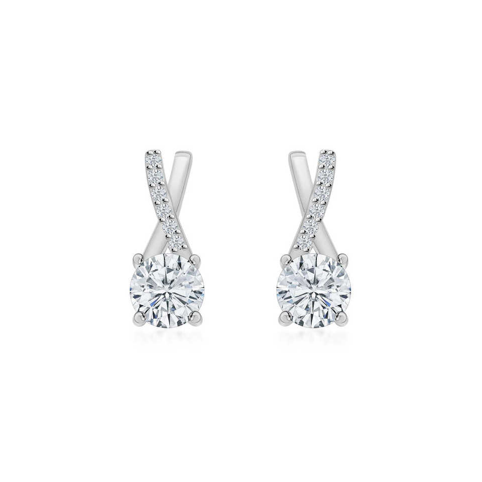 ต่างหูเพชรเม็ดเดี่ยวเกรด AAA อเมริกัน 0.75 กะรัต ขนาด 12 มม. เงินแท้ 925