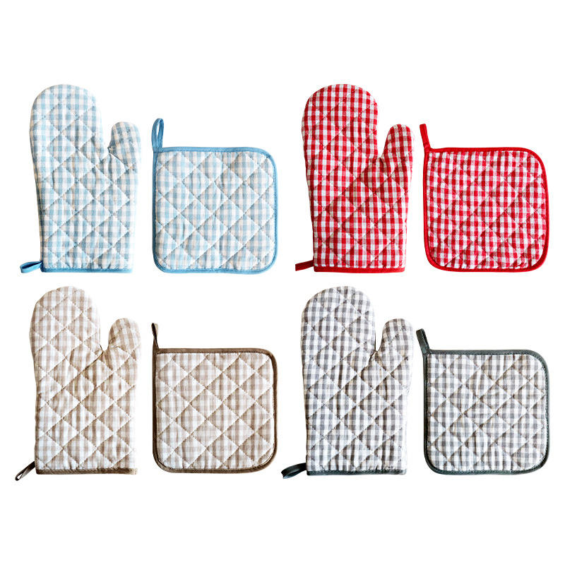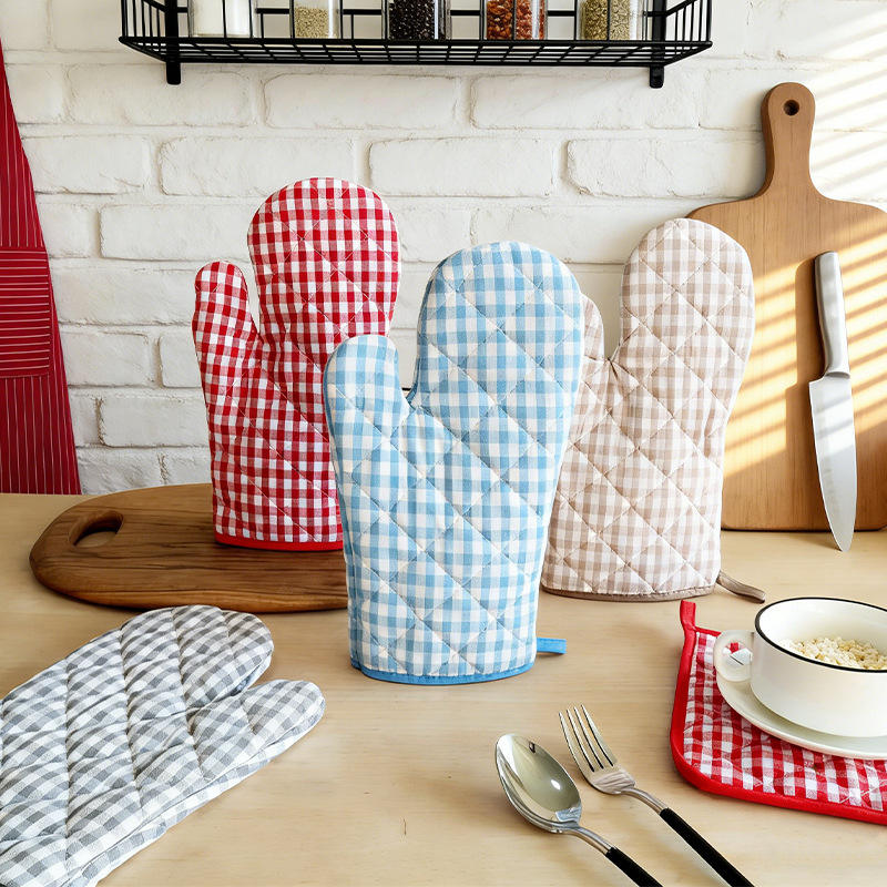 ถุงมือกันความร้อนลายตารางสไตล์อเมริกันคันทรี ทำจากผ้าฝ้าย ขนาด 18x30 ซม. สำหรับอบขนม ป้องกันความร้อน