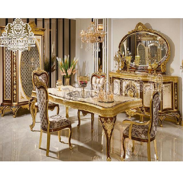 ชุดเฟอร์นิเจอร์ห้องรับประทานอาหารดีไซน์แบบอเมริกันโต๊ะรับประทานอาหารและเก้าอี้ไม้สักสุดหรู