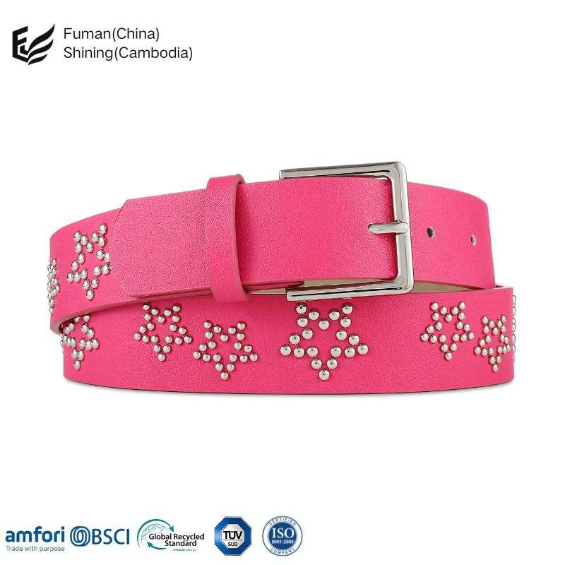 เข็มขัดคาดเอวผู้หญิงสีแดงพร้อมหัวเข็มขัดอัลลอยและหมุดดีไซน์ภาพดีไซน์แบบอเมริกัน