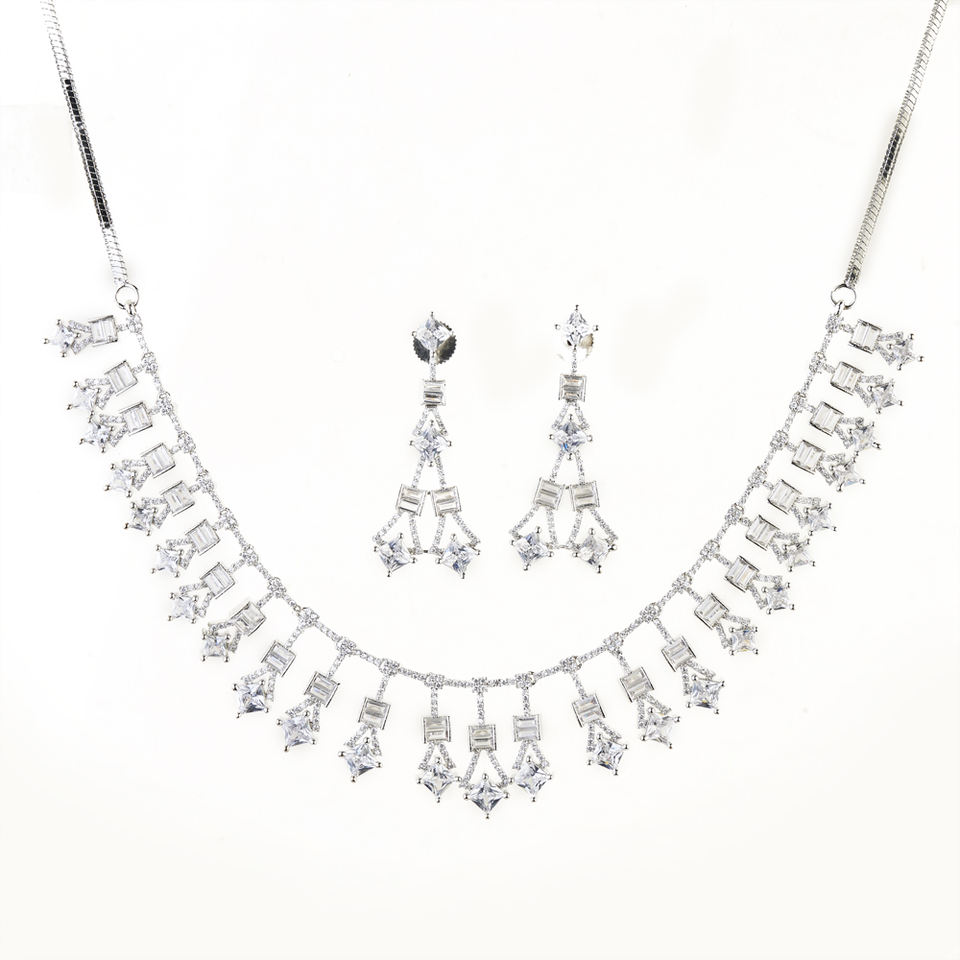 ชุดสร้อยคอชุบโรเดียมประดับเพชรแบบคลาสสิก423852ชุดเครื่องประดับแฟชั่นส่งออกอินเดียสำหรับงานแต่งงานงานหมั้นเพทาย