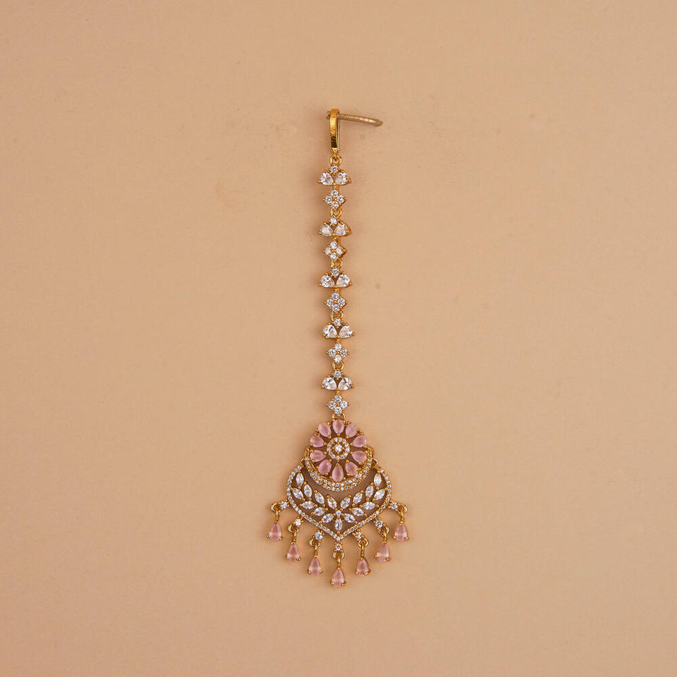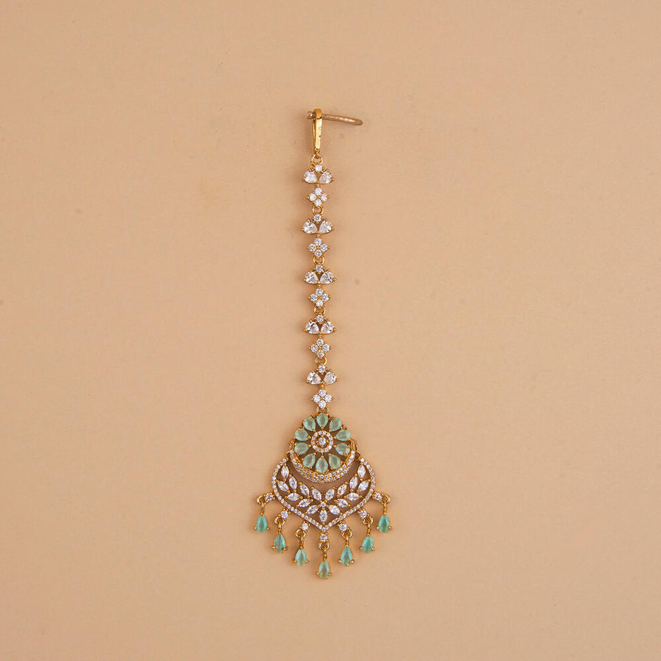 เครื่องประดับเพชรอเมริกันดูคลาสสิกลูกบาศก์เซอร์โคเนีย Maang Tikka Mehndi ชุบหน้าผากเครื่องประดับแฟชั่น