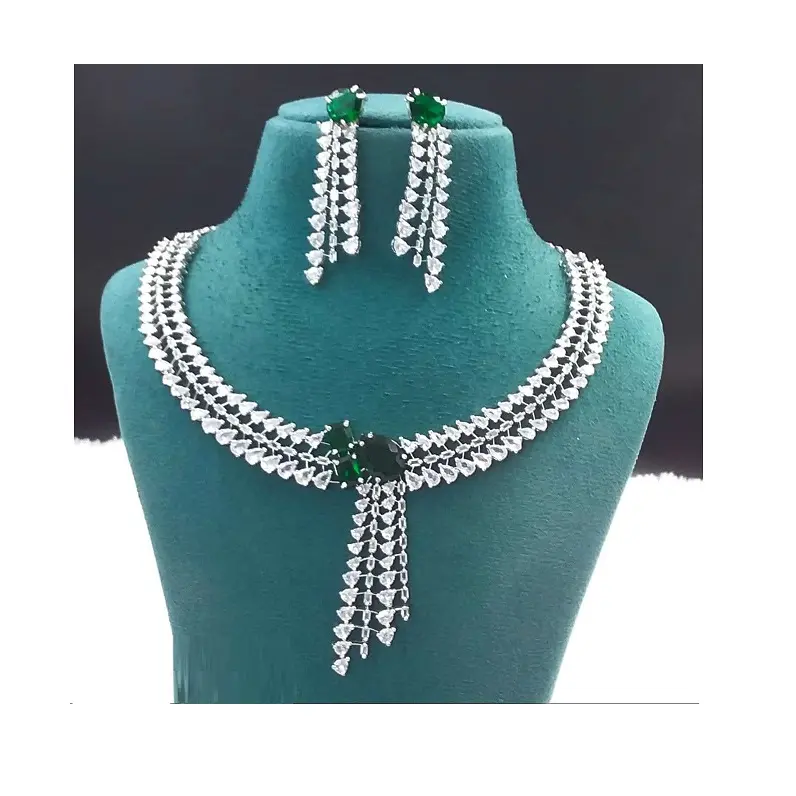 ชุดเครื่องประดับรูปเพชรแนวอเมริกันสำหรับผู้หญิงต่างหูสร้อยคอระยิบระยับสำหรับเครื่องประดับแฟชั่นทำจากทองเหลือง