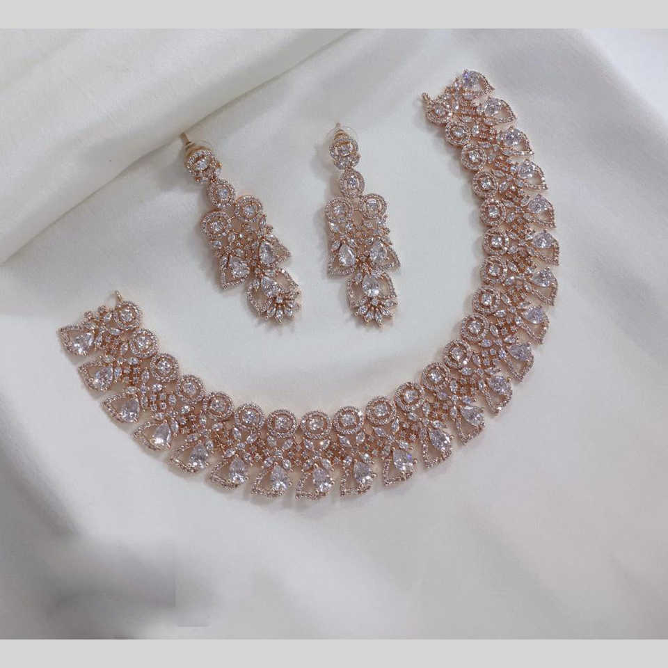 สร้อยคอและต่างหูประดับเพชรสไตล์อเมริกันโรสโกลด์หรูหราพร้อมชุดเครื่องประดับวิบวับดีไซน์ประณีตสำหรับเทศกาล