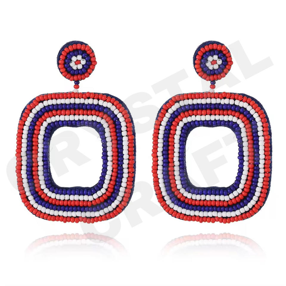 ต่างหูลูกปัดลายธงชาติอเมริกันสำหรับผู้หญิงสีส้มสีขาวสีน้ำเงินสำหรับงานแต่งงานหรือวันรำลึก