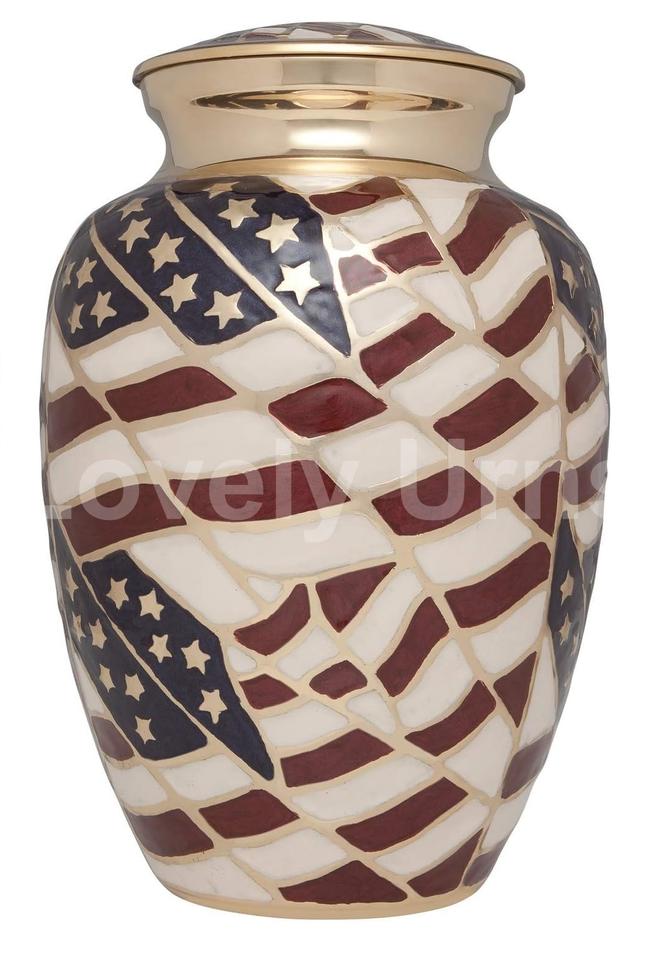 ธงชาติอเมริกาทองเหลืองเผาศพอนุสรณ์งานศพเถ้ามนุษย์ Urns ฟรีถุงกํามะหยี่