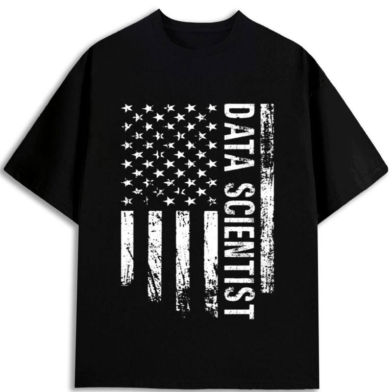 เสื้อยืดนักวิทยาศาสตร์ข้อมูลลายธงชาติอเมริกัน ผ้าฝ้าย 100% ทรงปกติ สำหรับผู้ชาย หนัก 180GSM ผลิตในสหรัฐอเมริกา