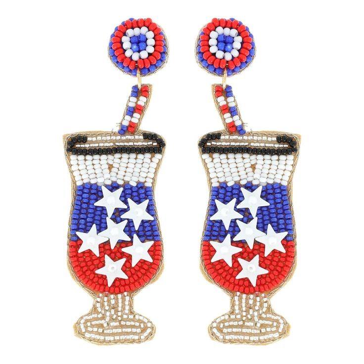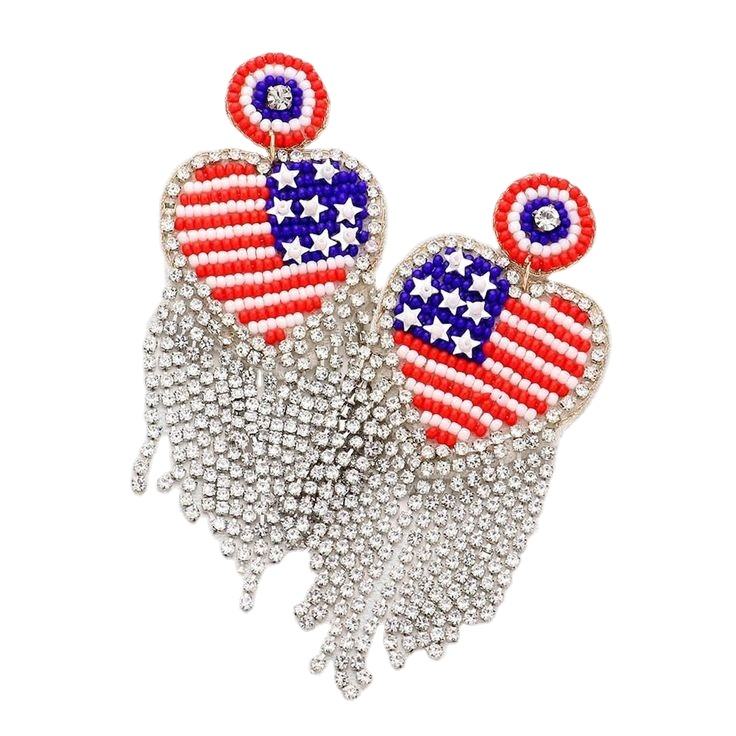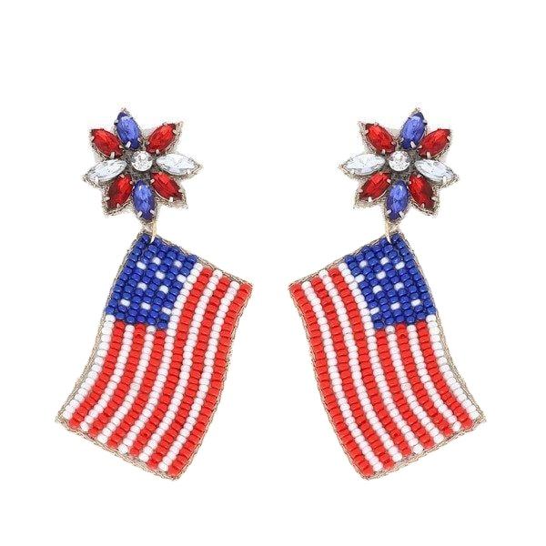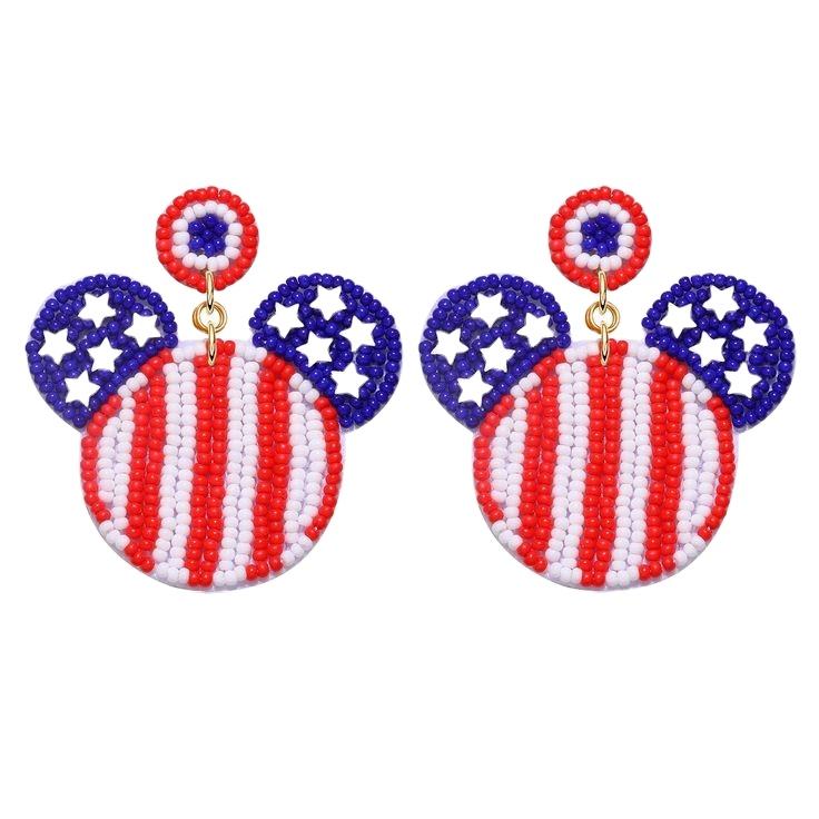 ต่างหูแบบปักลายธงชาติอเมริกันประดับด้วยลูกปัดต่างหูแบบ USA 4th สำหรับผู้หญิงต่างหูปักลูกปัดของขวัญแฟชั่นสำหรับเด็กผู้หญิง