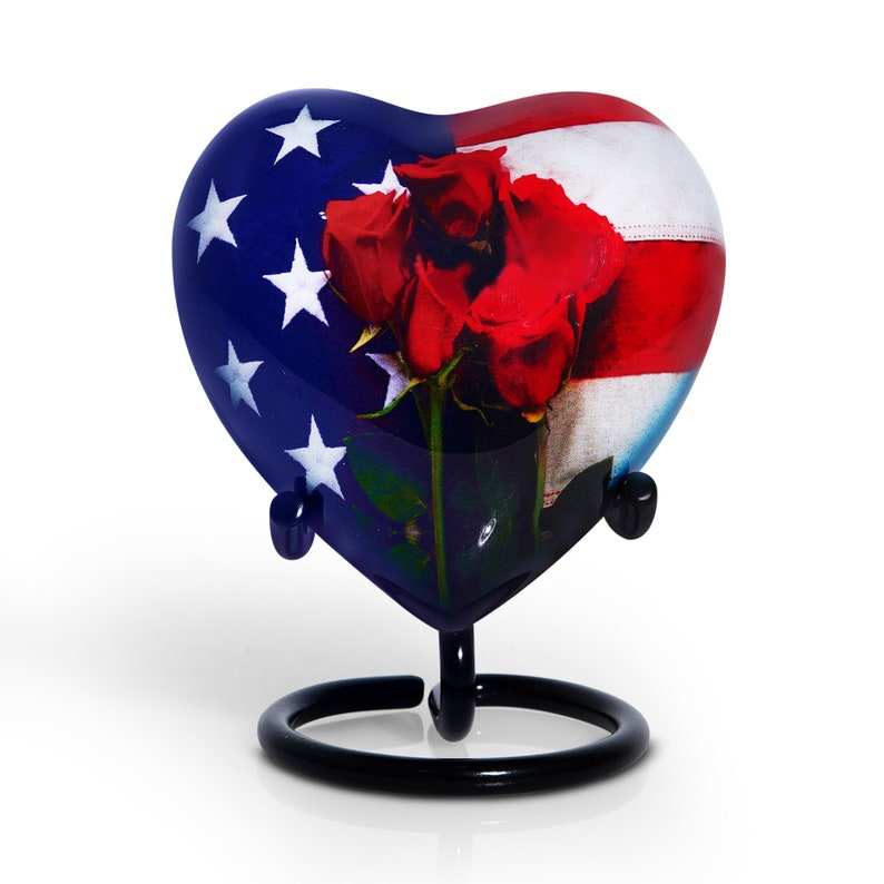 โกศเผาศพรูปหัวใจธงอเมริกันสำหรับขี้เถ้าขี้เถ้าโกศผู้ใหญ่สำหรับงานศพขนาดเล็ก