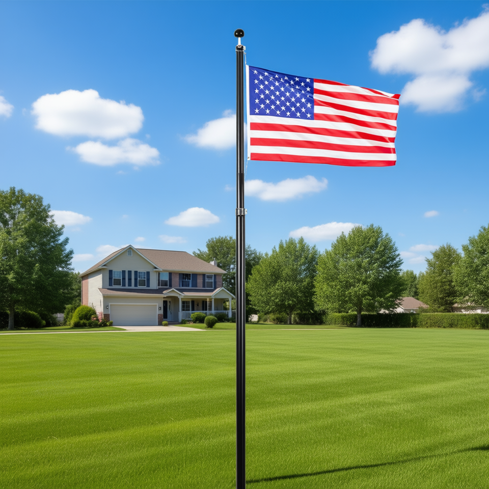 ชุดเสาธงชาติอเมริกันแบบยืดหดได้ 20 ฟุต ทำจากอะลูมิเนียมสำหรับใช้งานกลางแจ้ง ทนทานสีดำ พร้อมระบบติดตั้งธง