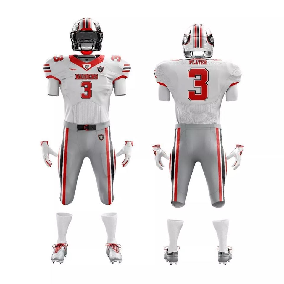 เสื้อฟุตบอลอเมริกัน100% ชุดยูนิฟอร์มฟุตบอลมืออาชีพผ้าโพลีเอสเตอร์ออกแบบได้ตามต้องการ