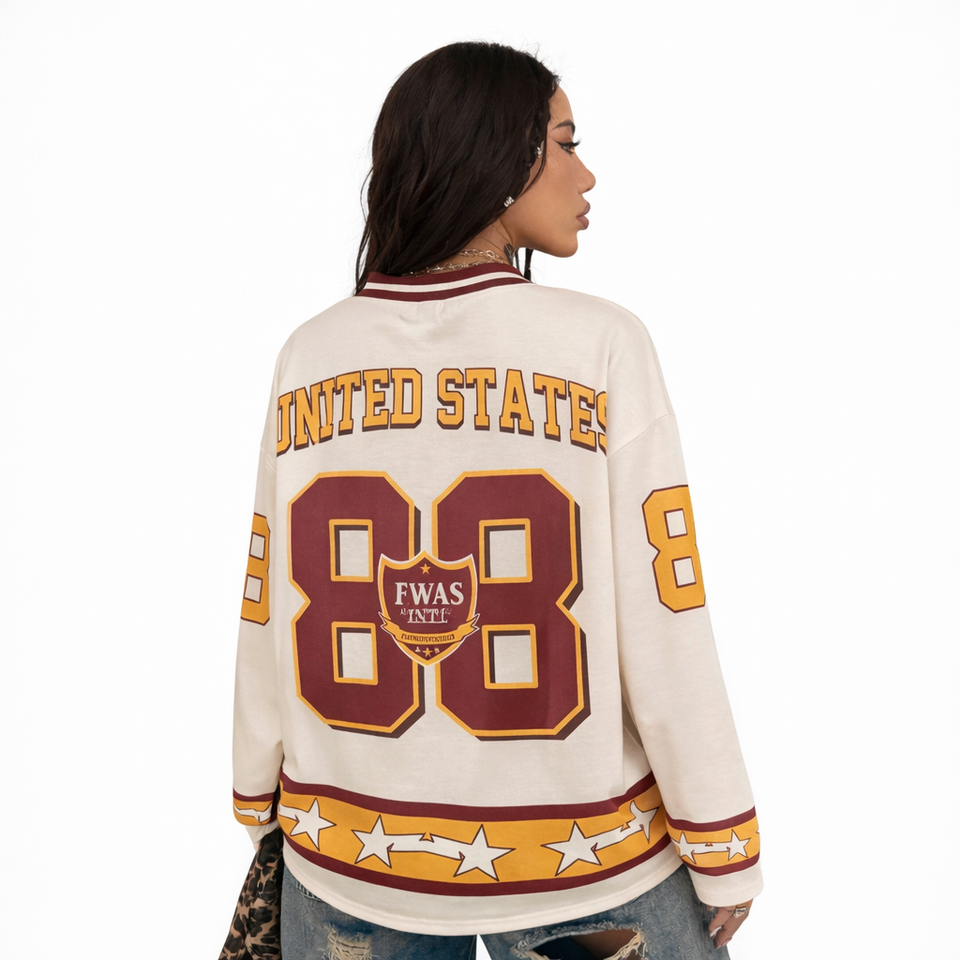 เสื้อเจอร์ซีย์อเมริกันฟุตบอลแฟชั่นทันสมัยสำหรับผู้หญิง คอวี แขนสั้น พิมพ์ลายดิจิทัล เสื้อยืดทรงหลวมสไตล์บาสเก็ตบอล ผู้ผลิต OEM