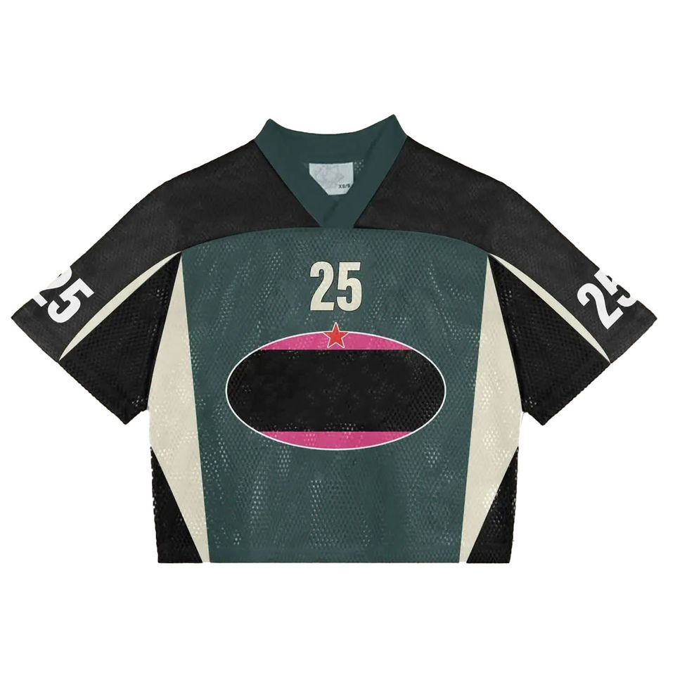 เสื้ออเมริกันฟุตบอล OEM ผู้ผลิตตามสั่ง แห้งเร็ว ทรงโอเวอร์ไซส์ แขนสั้น โพลีเอสเตอร์ 100% พิมพ์ลายด้วยความร้อน สำหรับผู้ชาย