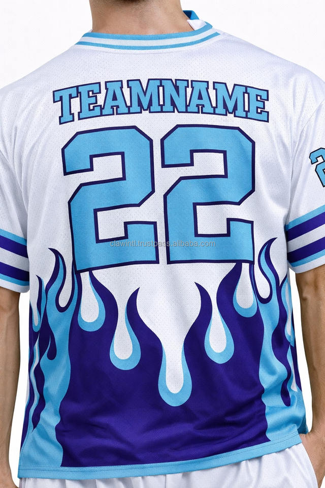 เสื้ออเมริกันฟุตบอลแบบมีสไตล์ โลโก้สั่งทำได้ สีฟ้าอ่อนและสีแดงเลือดหมู เสื้ออเมริกันฟุตบอลพรีเมียม เสื้อกีฬา