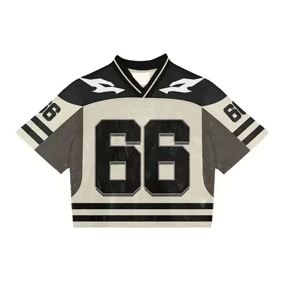 เสื้อยืดอเมริกันฟุตบอลสำหรับผู้ใหญ่และเยาวชนเสื้อกีฬาฮิปฮอปสีพื้นผ้าตาข่าย