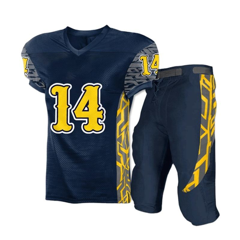 ชุดเสื้อและกางเกงอเมริกันฟุตบอลแบบเต็มชุด ออกแบบเองได้ แห้งเร็ว ชุดยูนิฟอร์มอเมริกันฟุตบอลสำหรับผู้ชาย