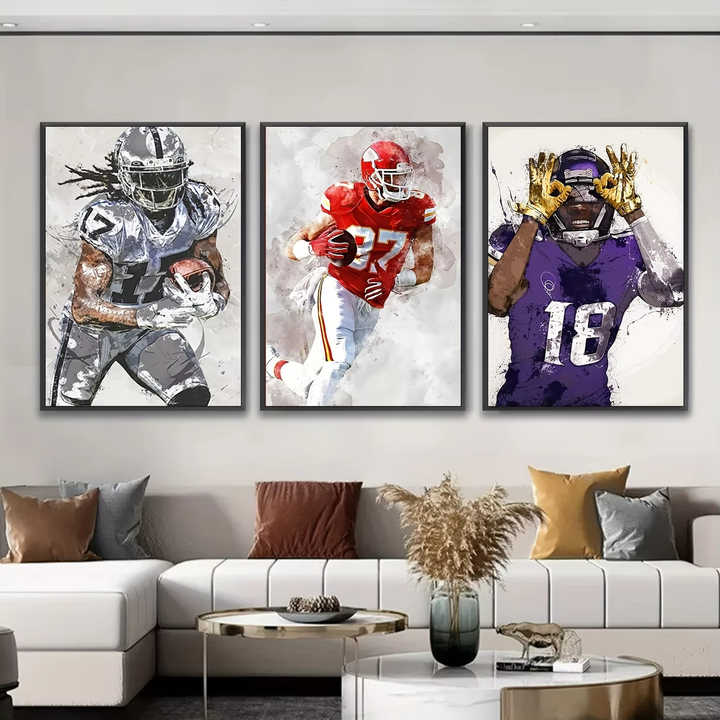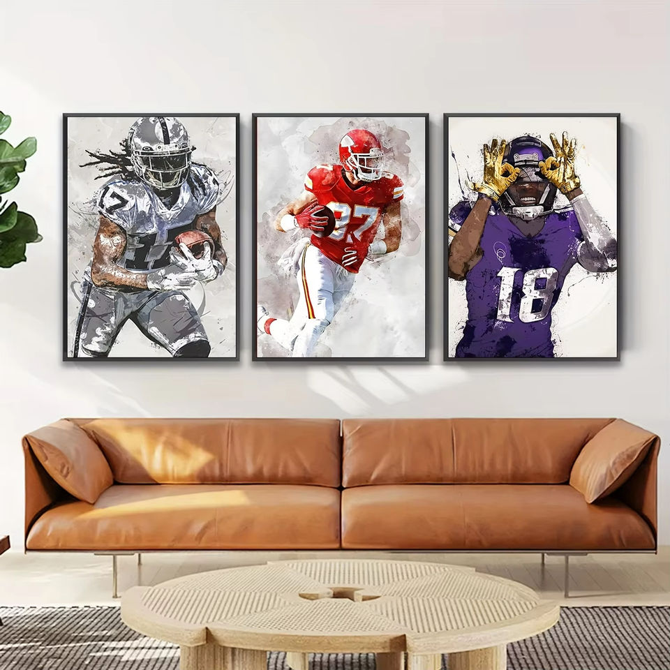 โปสเตอร์และภาพพิมพ์บนผืนผ้าใบแคนวาสศิลปะติดผนังลายพิมพ์รักบี้แบบเรียบง่ายผู้เล่นอเมริกันนักฟุตบอล