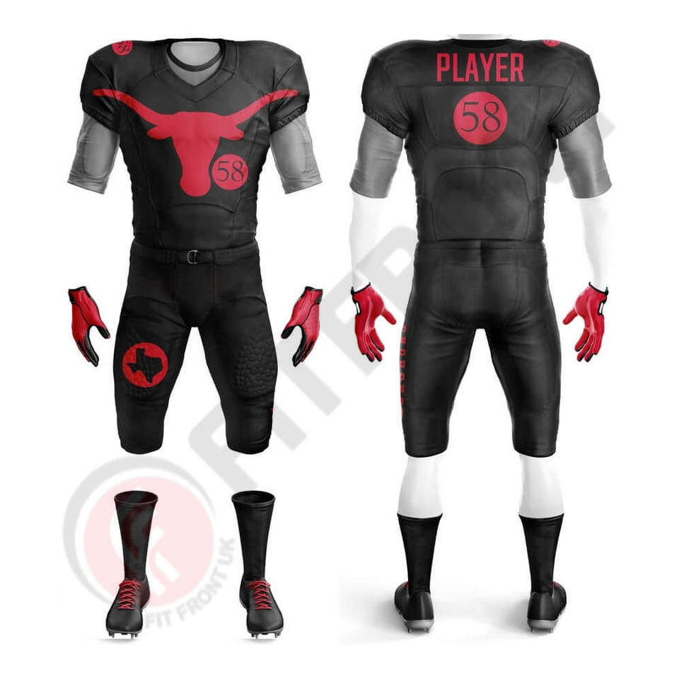 ชุดฟุตบอลอเมริกัน100% ชุดโพลีเอสเตอร์ผลิตโดยพอดีกับทีมอุตสาหกรรมด้านหน้ามีให้เลือกทุกขนาด